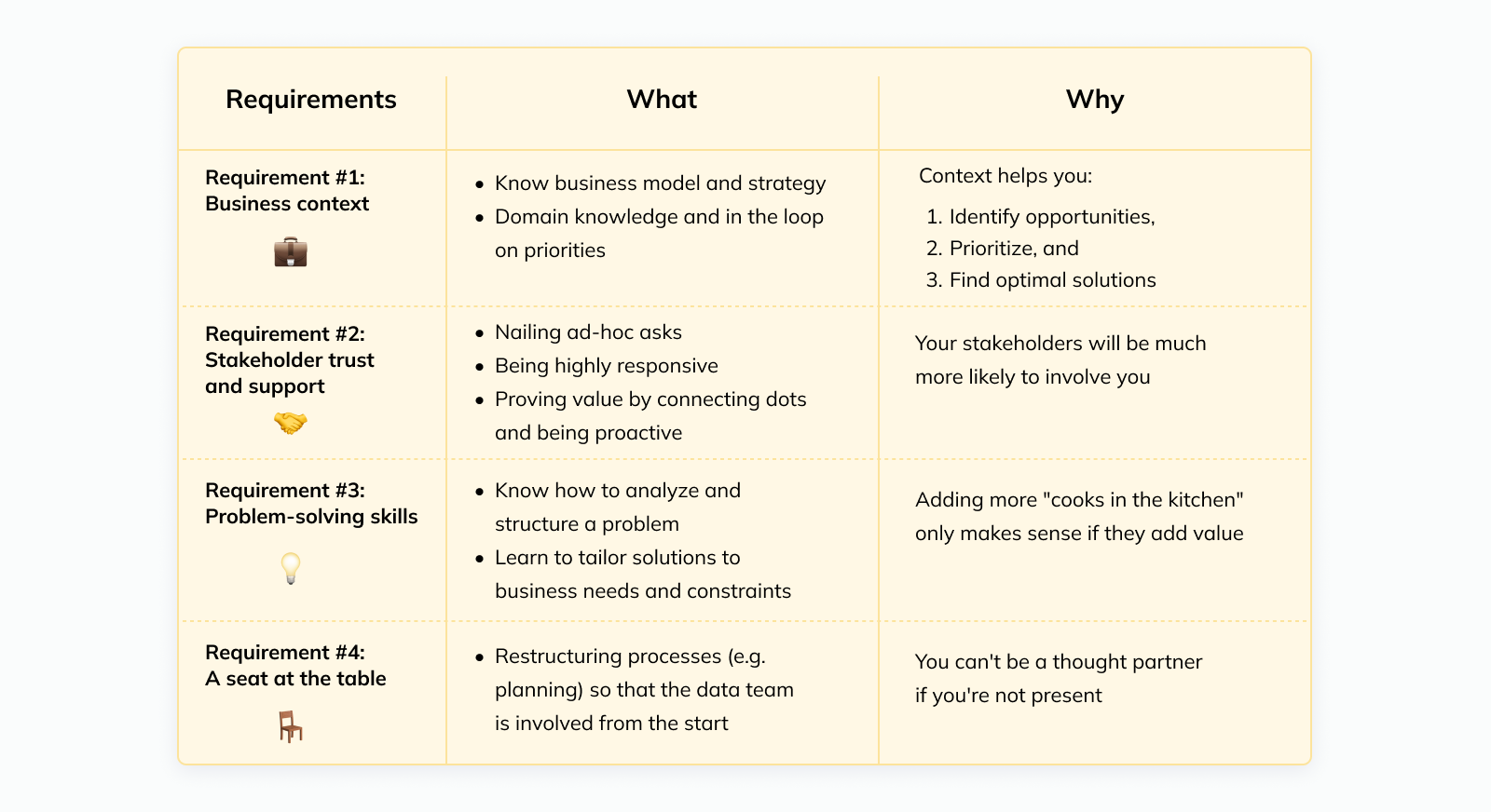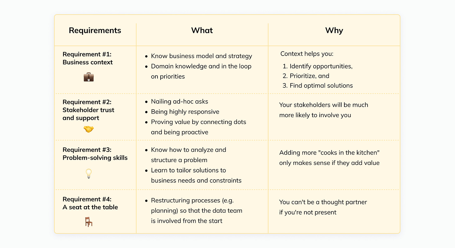 Data team members need to have deep business context and empathy for the pain points of their stakeholders