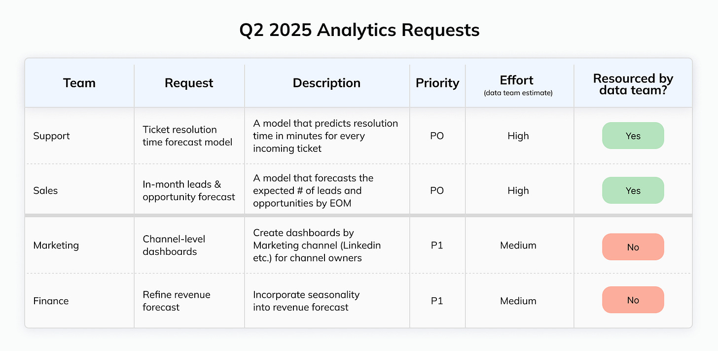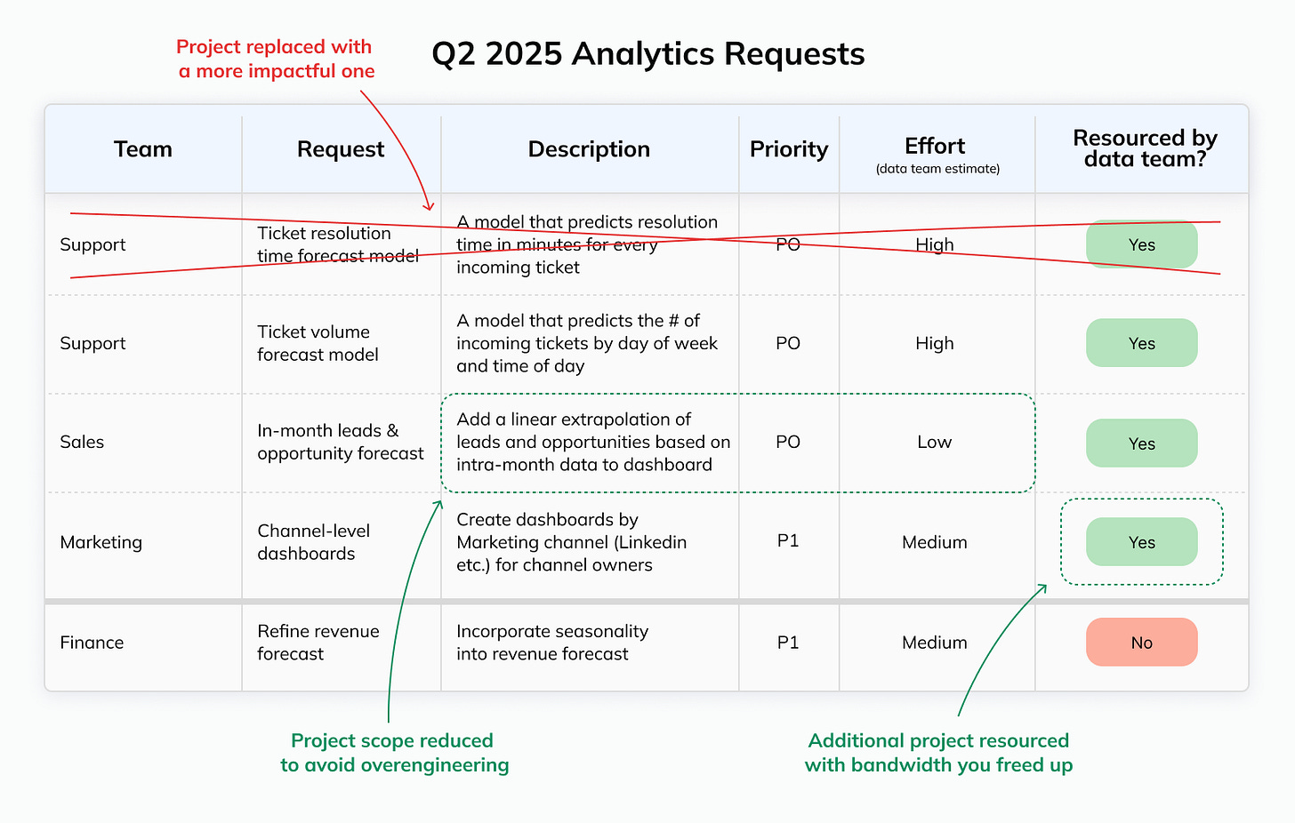 The purpose of a data team is to support the business in achieving its goals. To facilitate that collaboration, most data teams set up an intake process for requests at some point. So far, so harmless.
