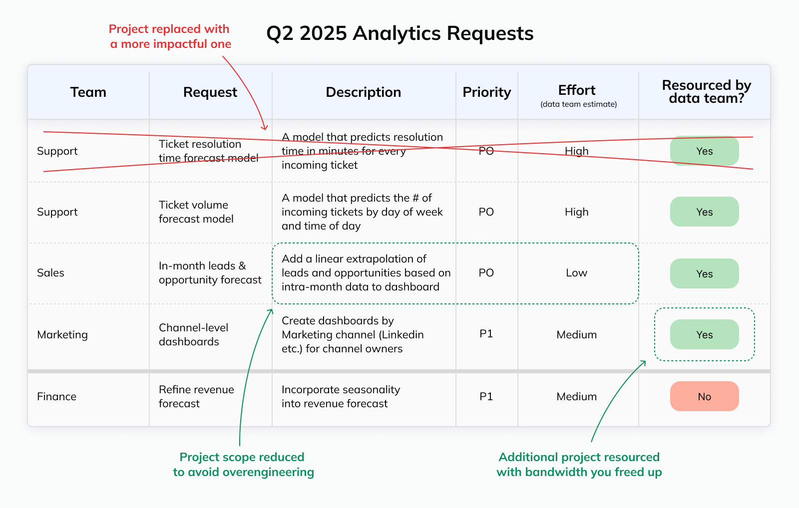 For business teams, pulling the data team into planning and problem-solving sessions adds additional friction (since there are more cooks in the kitchen). So to justify that, your team needs to add value without slowing things down.