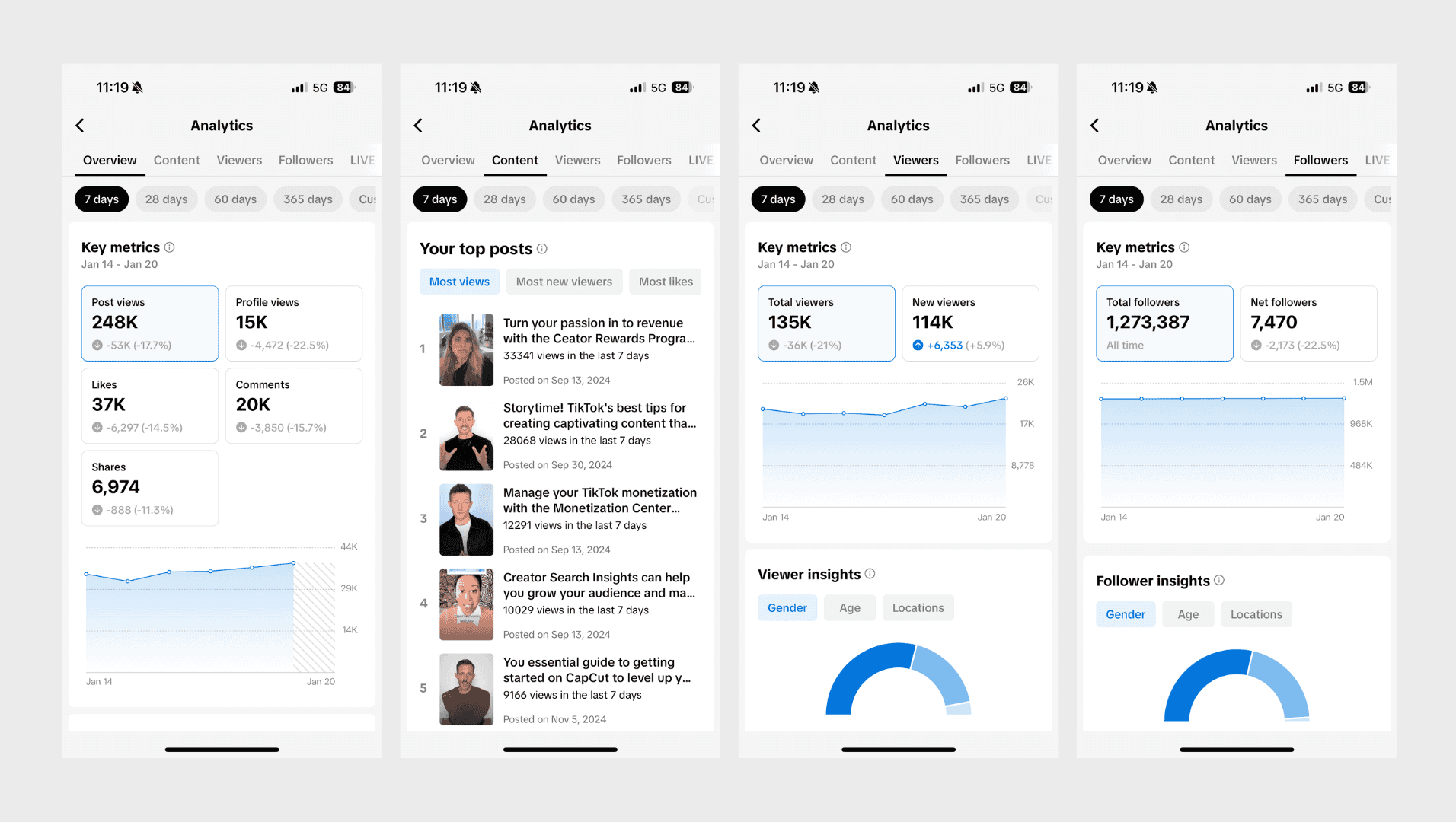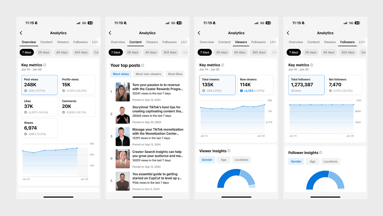 In addition, TikTok lets creators understand overall search trends and trending videos (Tier 2), and provides an AI assistant that helps with anything from identifying new video ideas to optimizing performance (Tier 4).
