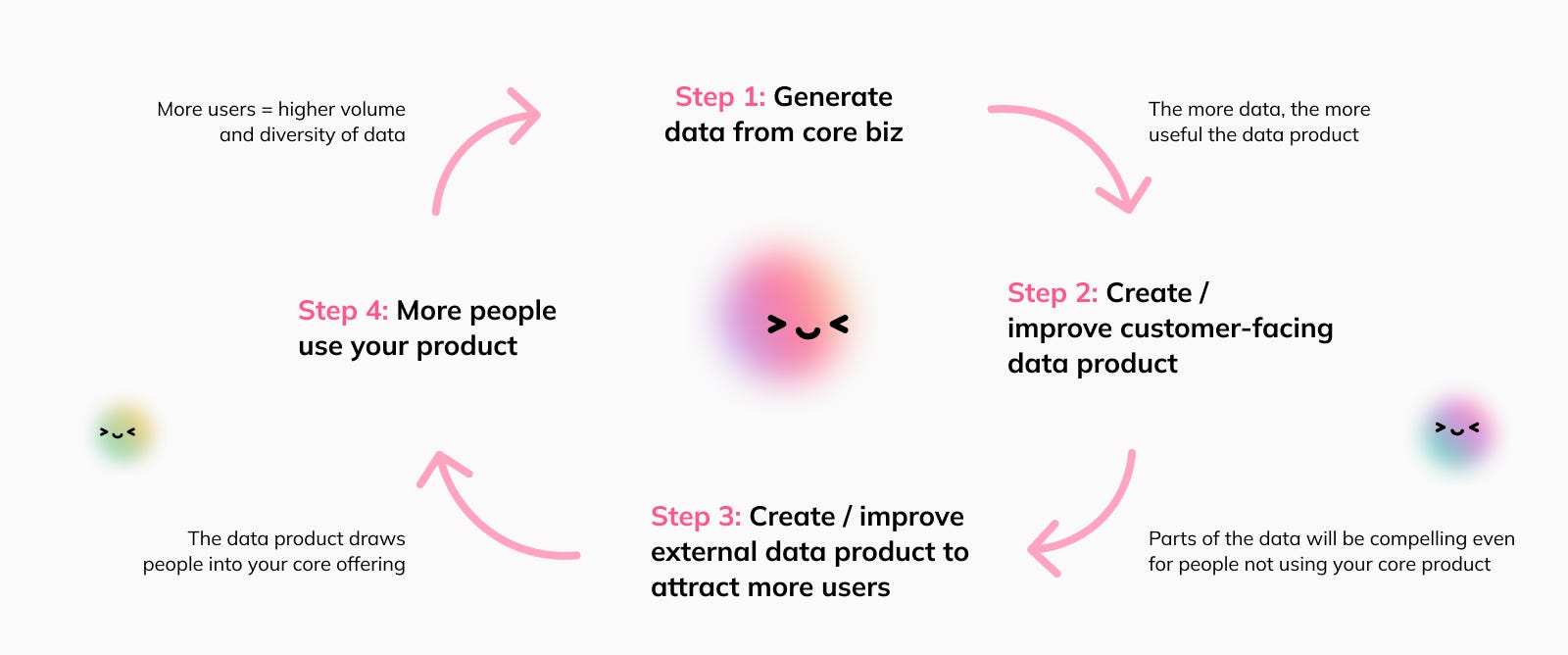 The holy grail is to design your data product around a network effect so that when you use it to attract new users, the usefulness of the data product for both existing and prospective users increases.