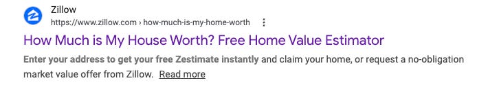 Traffic acquisition: The tool is available on the website — no login required. And it directly answers common search questions like “How much is my home worth?”, generating plenty of free traffic from Google (and potentially LLMs in the future).