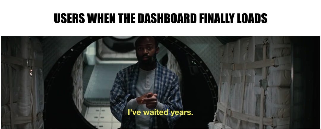 Finally, it doesn’t matter how helpful and intuitive your data product is. If it doesn’t load quickly, users will run out of patience and stop using it. If you’re a data person reading this, you may know what it’s like to get complaints about slow dashboards from internal stakeholders. But for in-app analytics, we’re now talking about your customer experience.